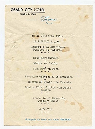 Amazon Com Grand City Hotel Menu Wine List Termas De Rio Hondo Argentina 1961 Home Kitchen